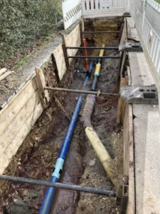 Für die Sanierung der parallel verlaufenden Gas- und Trinkwasserleitungen aus Guss mit einem Außendurchmesser von jeweils 160 Millimetern entschieden sich die Stadtwerke Esslingen für eine grabenlose Sanierung im Berstlining-Verfahren. Die Sanierung