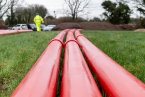 Dies ist vor allem wichtig, weil die Verlegung aufgrund der besonderen Gegebenheiten auf der Strecke komplex war. So wurden neben der offenen Bauweise des größten Teils der Strecke auf insgesamt sieben Teilabschnitten Spülbohrungen durchgeführt, um die Druckleitung unter verschiedenen Gewässern herleiten zu können. Aufgrund der anspruchsvollen Geologie dieser Abschnitte bot hier eine Überprüfung auf mögliche Beschädigungen bereits während des Einzugs einen großen Vorteil. Denn auf diese Weise können Schäden kostengünstig, schnell und unkompliziert repariert werden. Zudem werden Flurschäden dank dieser Technologie nicht nur während der Bauphase, sondern auch dauerhaft vermieden, da das System eine langfristige Überwachung und sichere Abwasserbeseitigung ermöglicht.