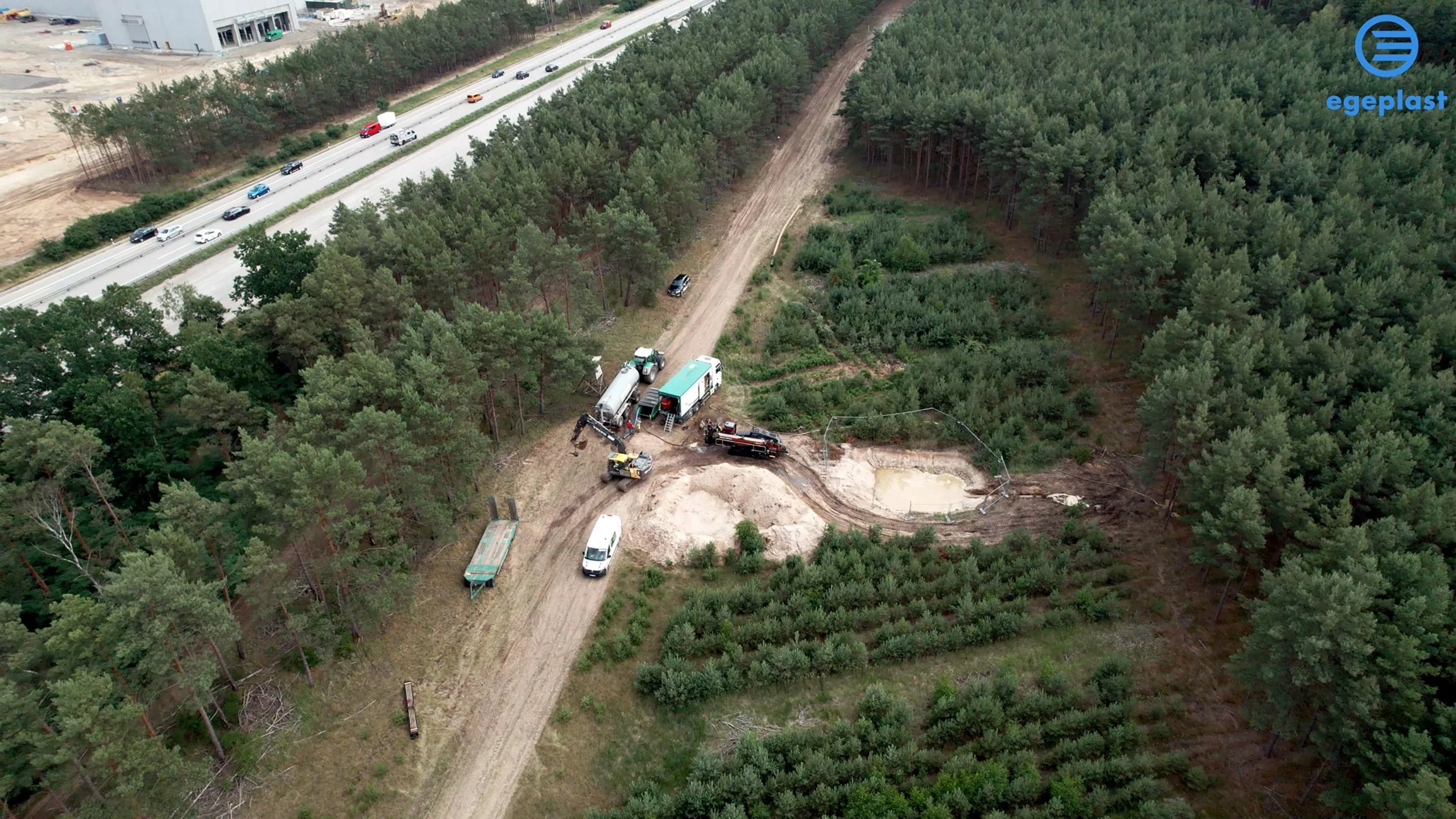 Die geplante und neu zu errichtende Abwasserdruckleitung mit einer Gesamtlänge von etwa 6,5 km führte über eine Strecke von 160 m vom Industriegelände direkt unter die Autobahn (BAB10 – östlicher Berliner Ring). Statt ein Stahlschutzrohr vorzupressen, wurde mittels HDD-Verfahren ein egeplast SLM® DCT-Rohrstrang OD 400 mm in SDR 11 direkt eingezogen und so die Möglichkeit geschaffen, den Strang nach der Verlegung auf Nichtbeschädigung zu überprüfen. Das positive Ergebnis wurde in der Baudokumentation festgehalten.